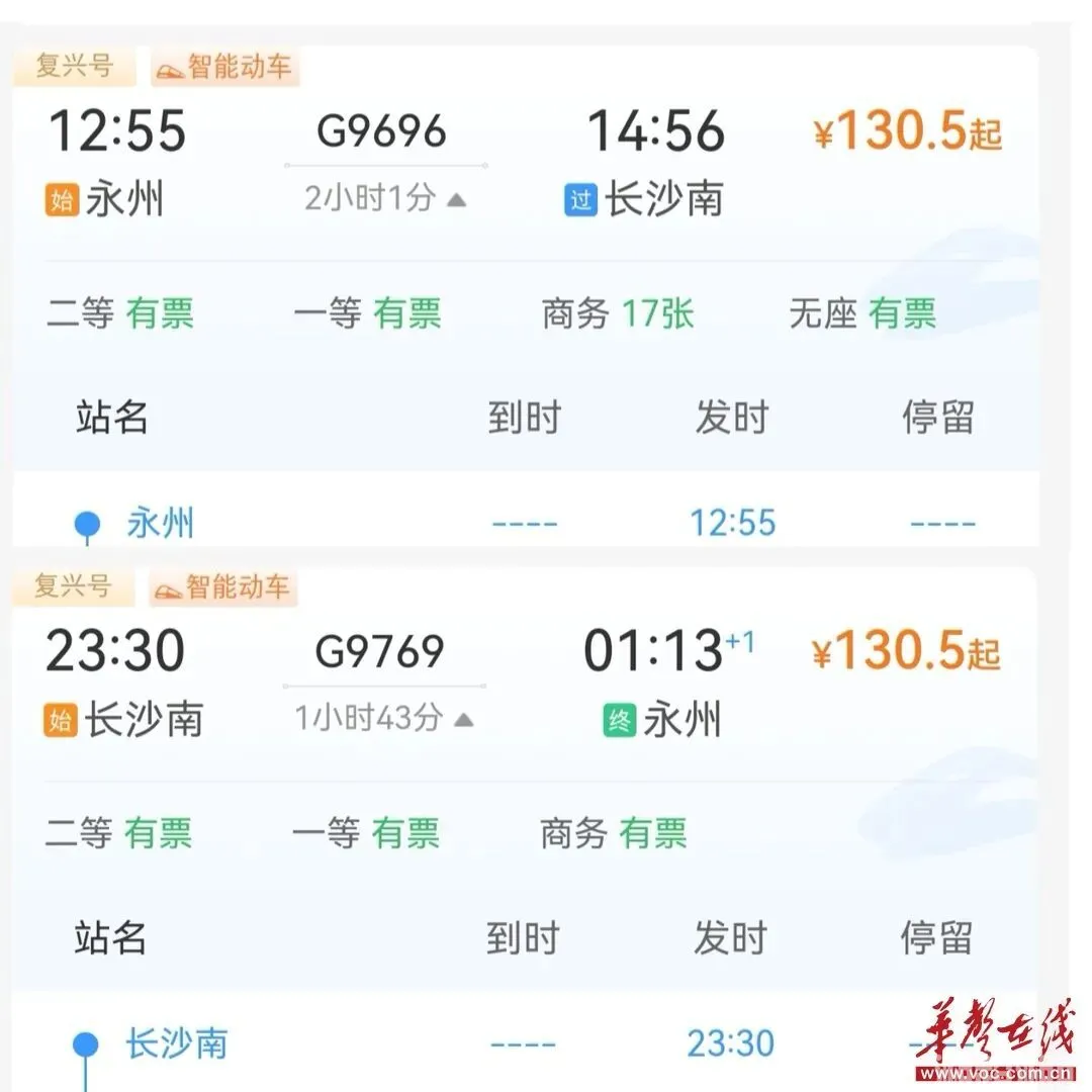 为全力保障赛事运输服务,长沙南站将在决赛当天加开G9757次、G9758次、G9695次、G9696次和G9769次五趟“球迷专列”,全面覆盖赛前前往、赛后返程等关键出行时段。其中,G9758次、G9696次由前序G9757次、G9695次从长沙南发往永州后折返运行,高效衔接观赛客流。决赛结束后,铁路部门特别安排G9769次夜间专列,23:30从长沙南站始发,次日01:13抵达永州,解决球迷赛后深夜返程难题。